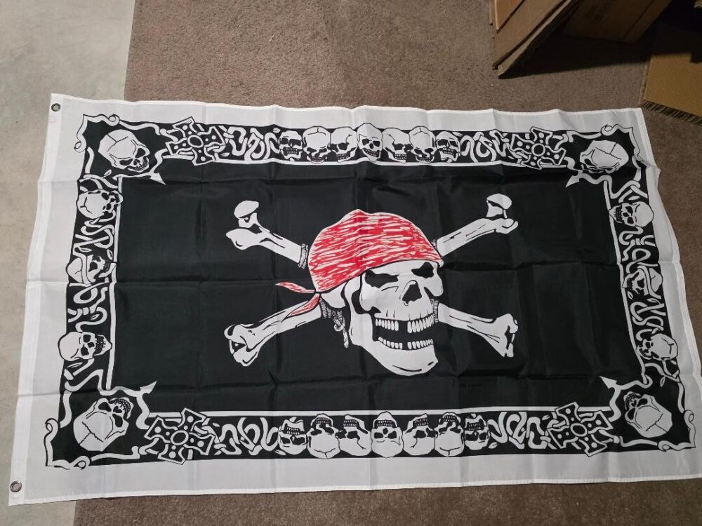 Pirate Flags Place Ad Browse Ads Search Ads Pirate Flags Click to enlarge image. Contact Information Contact Mark Reiland Phone: 9203279039 Price: $12.00 More Information New, never flown pirate flags. Flags are 3'x5'. $12.00 each. Let your enemy know you will take no prisoners this summer! This Ad has been viewed 0 times.